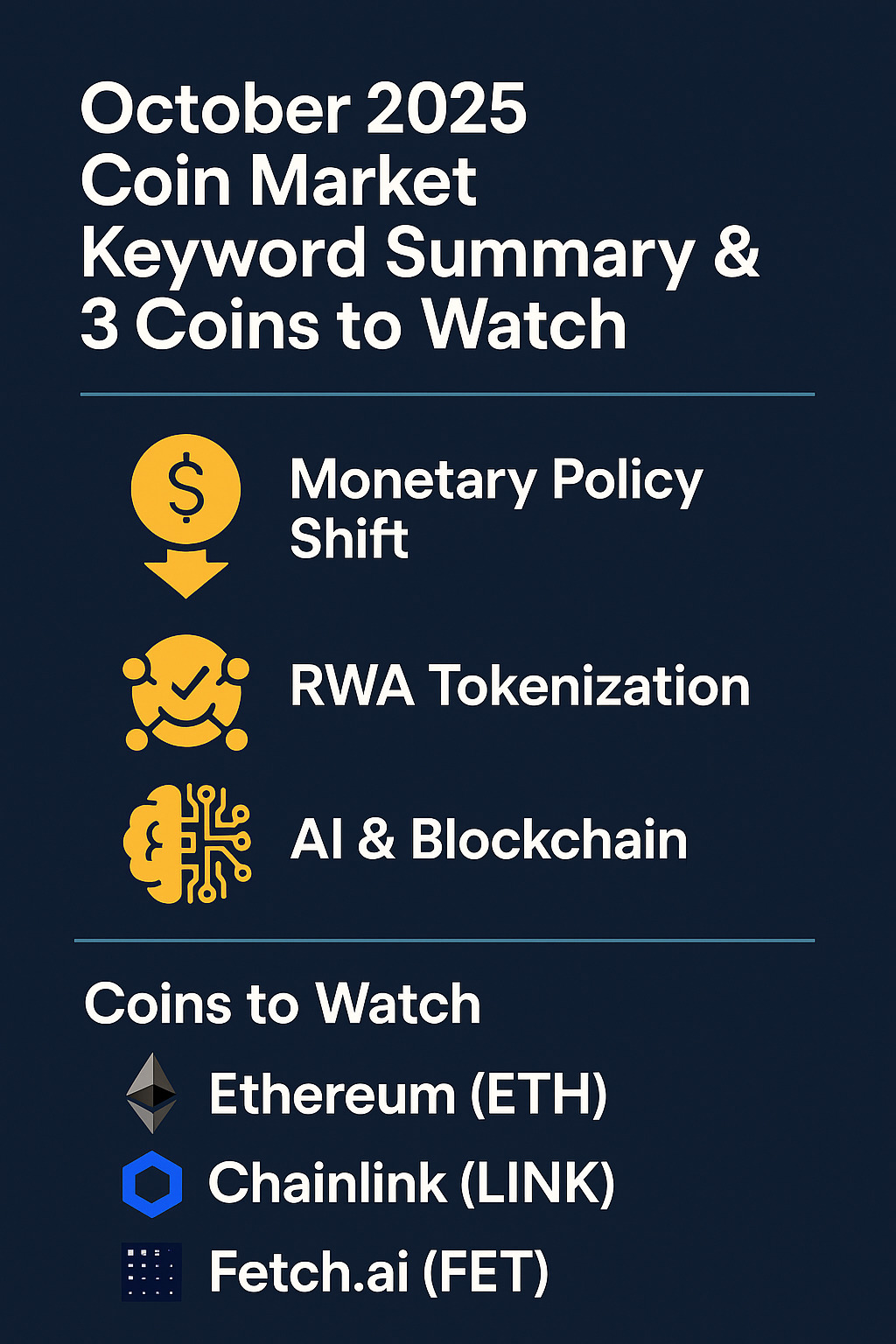 시장은 ‘투기 → 실물 연결’로 전환 중입니다. 핵심 트렌드는 금리 인하/유동성 회복, RWA 토큰화, AI×블록체인 융합.